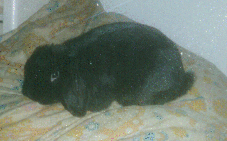 Born in August, 1992, our Gremlin is a 9-pound French lop rabbit. He is all black, except for chocolate brown on the bottoms of his feet.